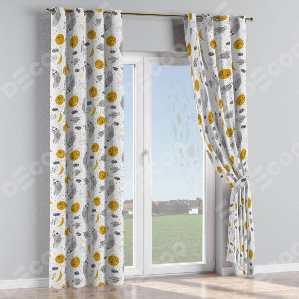 Комплект прямых штор, от производителя «Cortin», пошиты из ткани блэкаут с нанесением сублимационной печати «Ленивец в шлеме». Данная модель пошита на люверсах, комплектуется на выбор круглым карнизом и подходит для монтажа на стену или потолок. Прямые шторы на люверсах шьются по стандарту с коэффициентом 1/2 (на 100 см. ширины проёма 200 см. ширины ткани), отличительным преимуществом данной модели является простой способ монтажа. Достаточно повесить ее на трубу и штора готова!