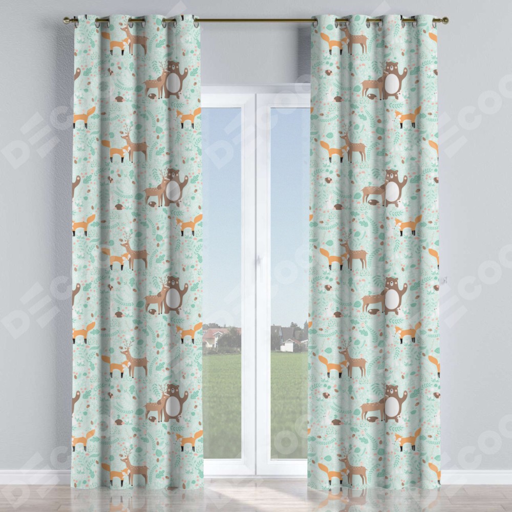 Комплект прямых штор, от производителя «Cortin», пошиты из ткани блэкаут с нанесением сублимационной печати «Лесные друзья». Данная модель пошита на люверсах, комплектуется на выбор круглым карнизом и подходит для монтажа на стену или потолок. Прямые шторы на люверсах шьются по стандарту с коэффициентом 1/2 (на 100 см. ширины проёма 200 см. ширины ткани), отличительным преимуществом данной модели является простой способ монтажа. Достаточно повесить ее на трубу и штора готова!
