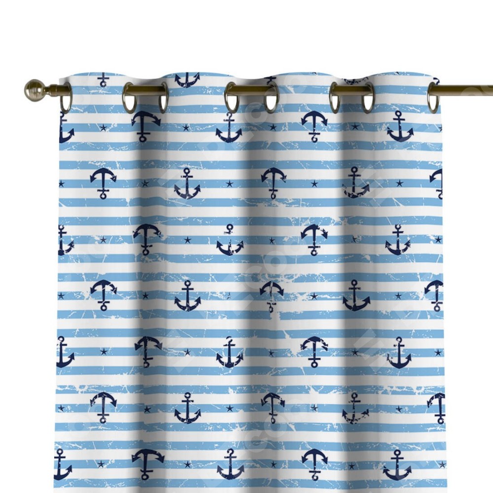 Комплект прямых штор, от производителя «Cortin», пошиты из ткани блэкаут с нанесением сублимационной печати «Полоски и якори». Данная модель пошита на люверсах, комплектуется на выбор круглым карнизом и подходит для монтажа на стену или потолок. Прямые шторы на люверсах шьются по стандарту с коэффициентом 1/2 (на 100 см. ширины проёма 200 см. ширины ткани), отличительным преимуществом данной модели является простой способ монтажа. Достаточно повесить ее на трубу и штора готова!
