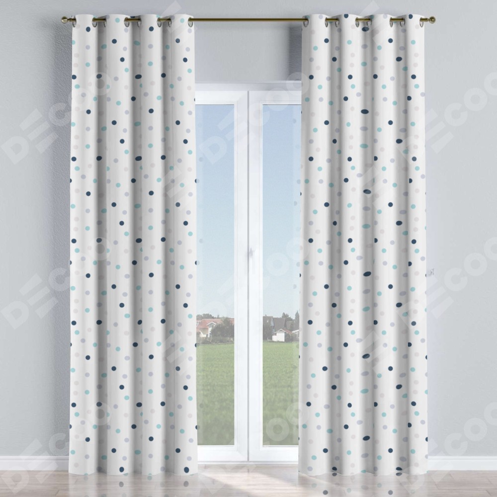 Комплект прямых штор, от производителя «Cortin», пошиты из ткани блэкаут с нанесением сублимационной печати «Точки». Данная модель пошита на люверсах, комплектуется на выбор круглым карнизом и подходит для монтажа на стену или потолок. Прямые шторы на люверсах шьются по стандарту с коэффициентом 1/2 (на 100 см. ширины проёма 200 см. ширины ткани), отличительным преимуществом данной модели является простой способ монтажа. Достаточно повесить ее на трубу и штора готова!