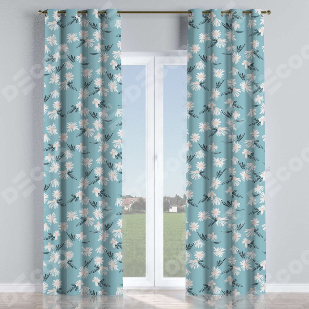 Комплект прямых штор, от производителя «Cortin», пошиты из ткани блэкаут с нанесением сублимационной печати «Чудесные ромашки». Данная модель пошита на люверсах, комплектуется на выбор круглым карнизом и подходит для монтажа на стену или потолок. Прямые шторы на люверсах шьются по стандарту с коэффициентом 1/2 (на 100 см. ширины проёма 200 см. ширины ткани), отличительным преимуществом данной модели является простой способ монтажа. Достаточно повесить ее на трубу и штора готова!