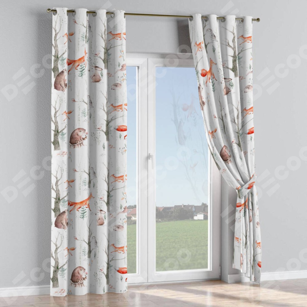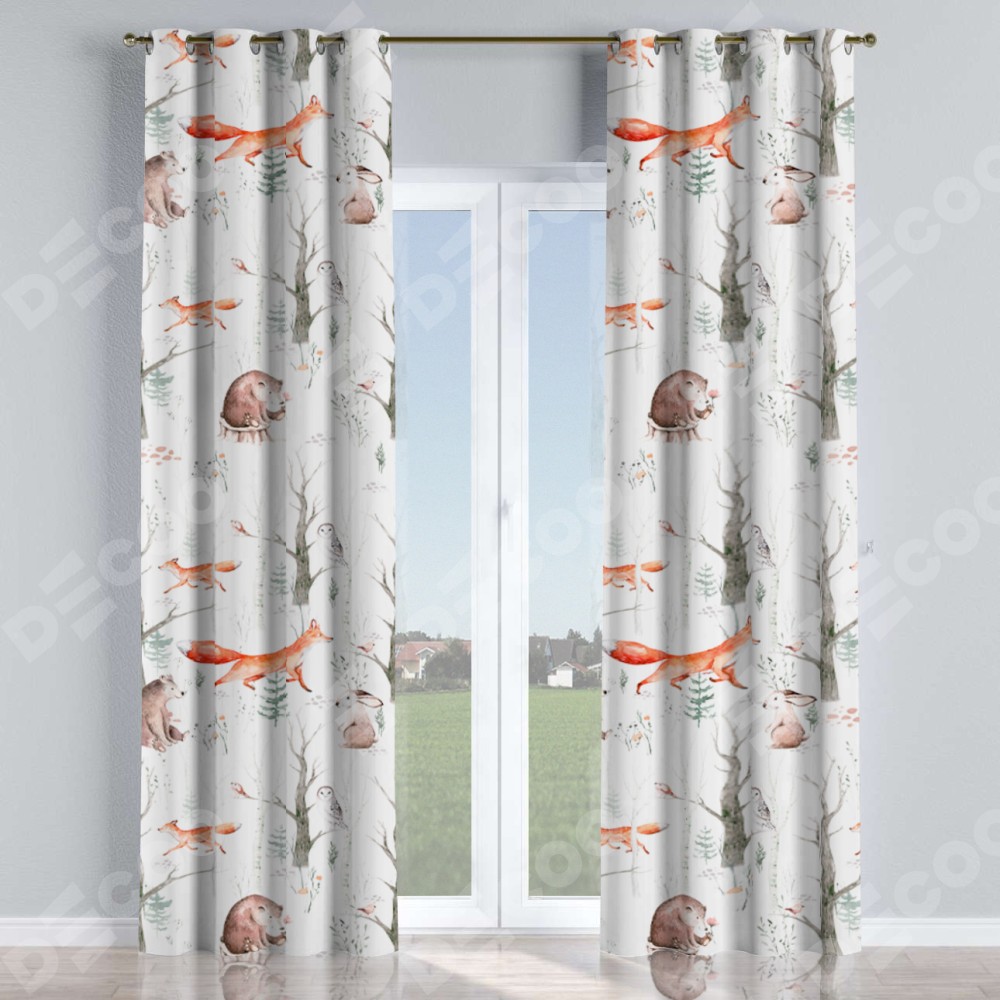 Комплект прямых штор, от производителя «Cortin», пошиты из ткани блэкаут с нанесением сублимационной печати «Лесной питомник». Данная модель пошита на люверсах, комплектуется на выбор круглым карнизом и подходит для монтажа на стену или потолок. Прямые шторы на люверсах шьются по стандарту с коэффициентом 1/2 (на 100 см. ширины проёма 200 см. ширины ткани), отличительным преимуществом данной модели является простой способ монтажа. Достаточно повесить ее на трубу и штора готова!