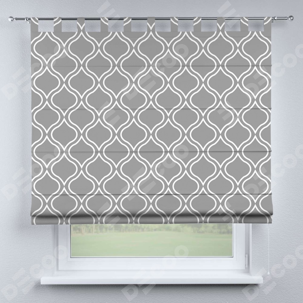 Римская штора производителя «Cortin», используется для проёма, пошита из ткани блэкаут с нанесением сублимационной печати «Тайны востока серый». Данная модель пошита на петлях, комплектуется на выбор круглым карнизом и подходит для монтажа на стену. Римская штора на петлях имеет простую систему регулировки высоты, отличительным преимуществом данной модели является простой способ монтажа. Достаточно повесить ее на трубу и штора готова!