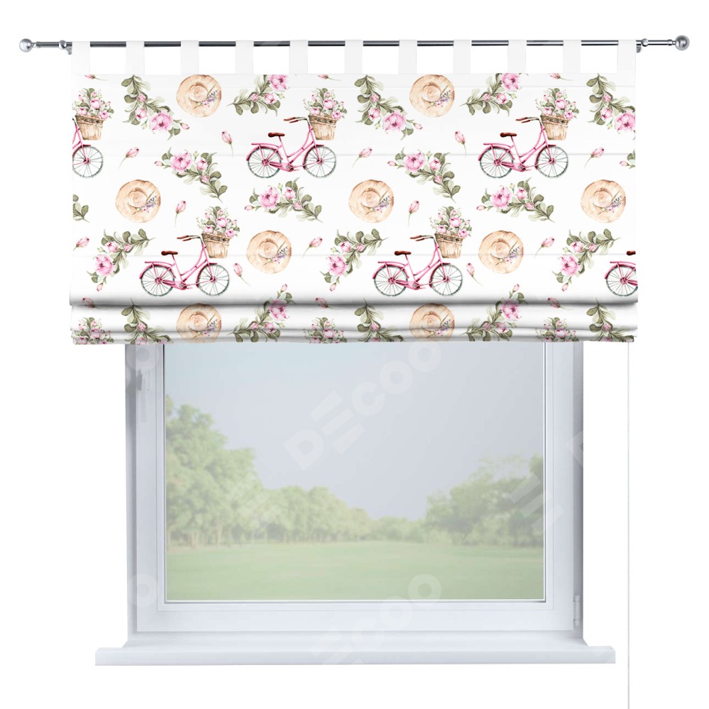 Римская штора производителя «Cortin», используется для проёма, пошита из ткани блэкаут с нанесением сублимационной печати «Розовый велосипед». Данная модель пошита на петлях, комплектуется на выбор круглым карнизом и подходит для монтажа на стену. Римская штора на петлях имеет простую систему регулировки высоты, отличительным преимуществом данной модели является простой способ монтажа. Достаточно повесить ее на трубу и штора готова!
