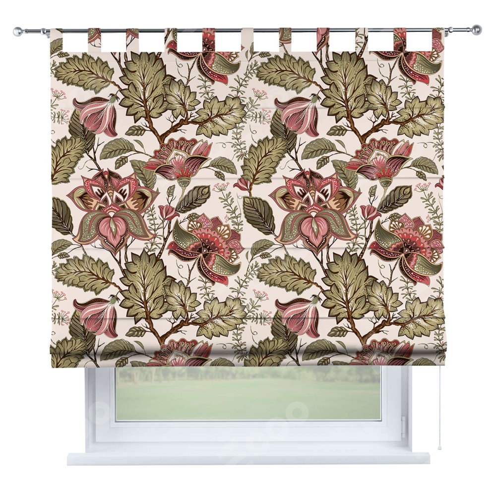 Римская штора производителя «Cortin», используется для проёма, пошита из ткани блэкаут с нанесением сублимационной печати «Старинные цветы». Данная модель пошита на петлях, комплектуется на выбор круглым карнизом и подходит для монтажа на стену. Римская штора на петлях имеет простую систему регулировки высоты, отличительным преимуществом данной модели является простой способ монтажа. Достаточно повесить ее на трубу и штора готова!