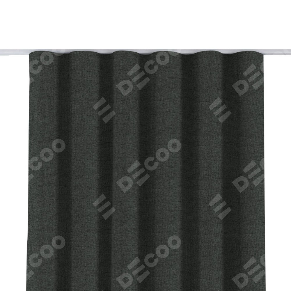 Комплект прямых штор, от производителя «Cortin», пошиты из ткани стиф димаут графит, артикул ткани 44026. С изнаночной стороны в верхней части штор пристрачивается шторная лента с декоративными складками «Волна». Для создания элегантных складок прямые шторы шьются по стандарту с коэффициентом 1:2 (на 100 см. ширины проёма 200 см. ширины ткани).