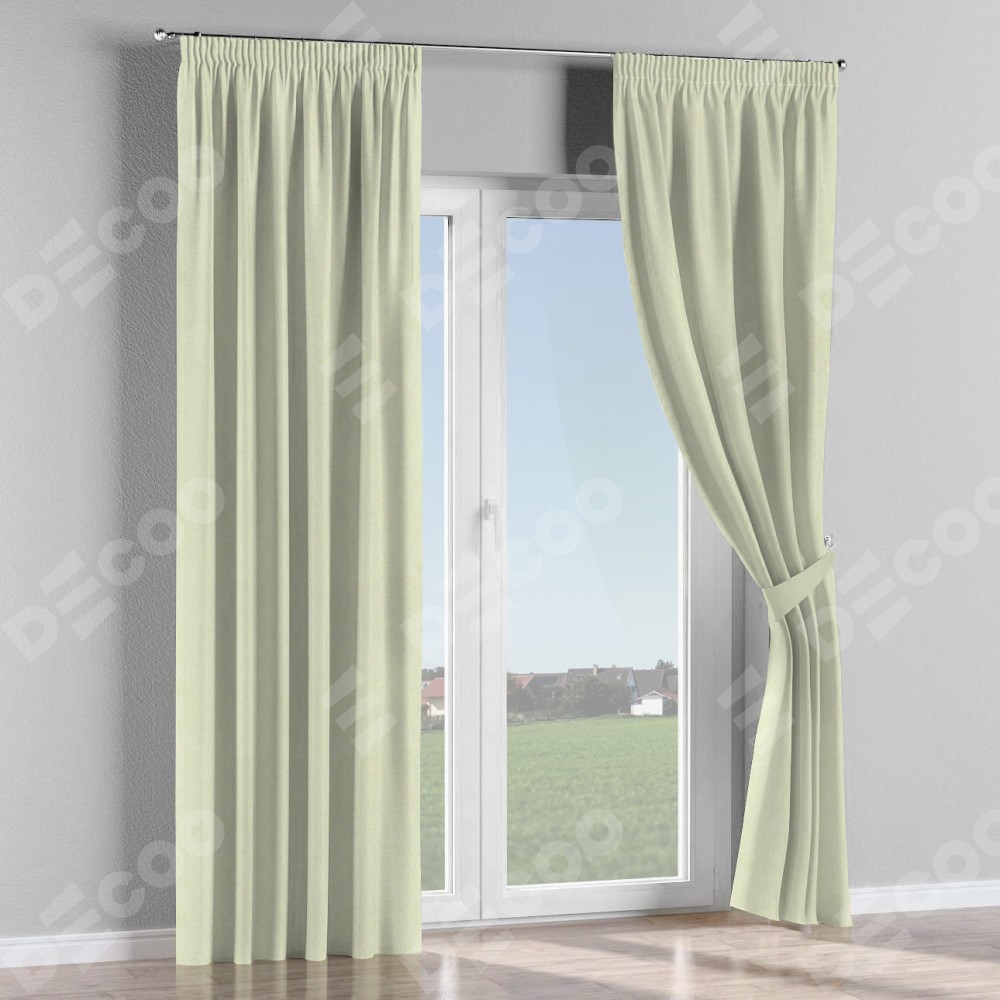 Комплект прямых штор, от производителя «Cortin», пошиты из ткани блэкаут однотонный сливочный, артикул ткани 6668−02. С изнаночной стороны в верхней части штор пристрачивается шторная лента с декоративными складками «Карандаш». Для создания элегантных складок прямые шторы шьются по стандарту с коэффициентом 1:2 (на 100 см. ширины проёма 200 см. ширины ткани).