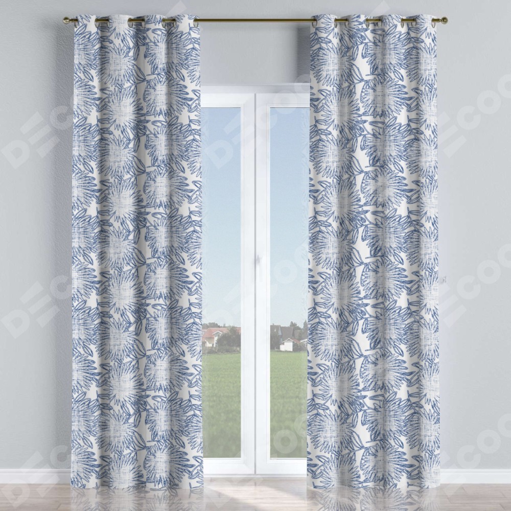 Комплект прямых штор, от производителя «Cortin», пошиты из ткани блэкаут с нанесением сублимационной печати «Синий букет». Данная модель пошита на люверсах, комплектуется на выбор круглым карнизом и подходит для монтажа на стену или потолок. Прямые шторы на люверсах шьются по стандарту с коэффициентом 1/2 (на 100 см. ширины проёма 200 см. ширины ткани), отличительным преимуществом данной модели является простой способ монтажа. Достаточно повесить ее на трубу и штора готова!