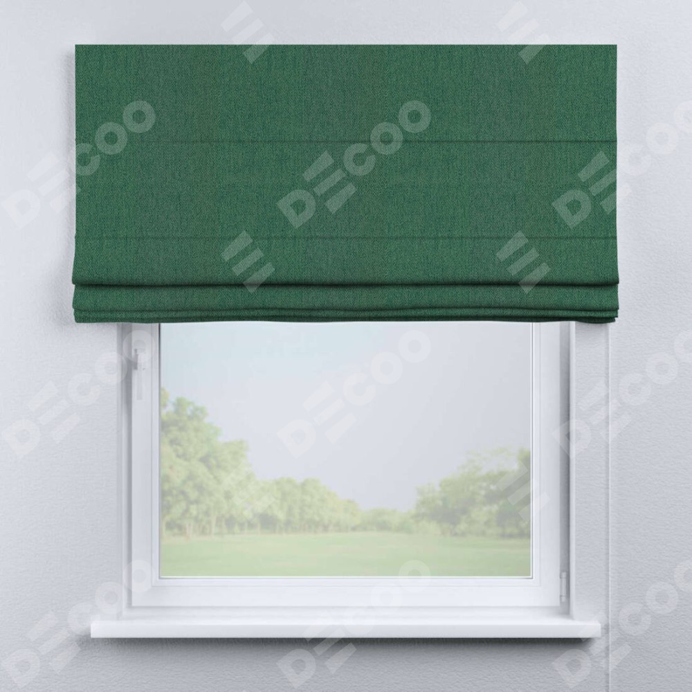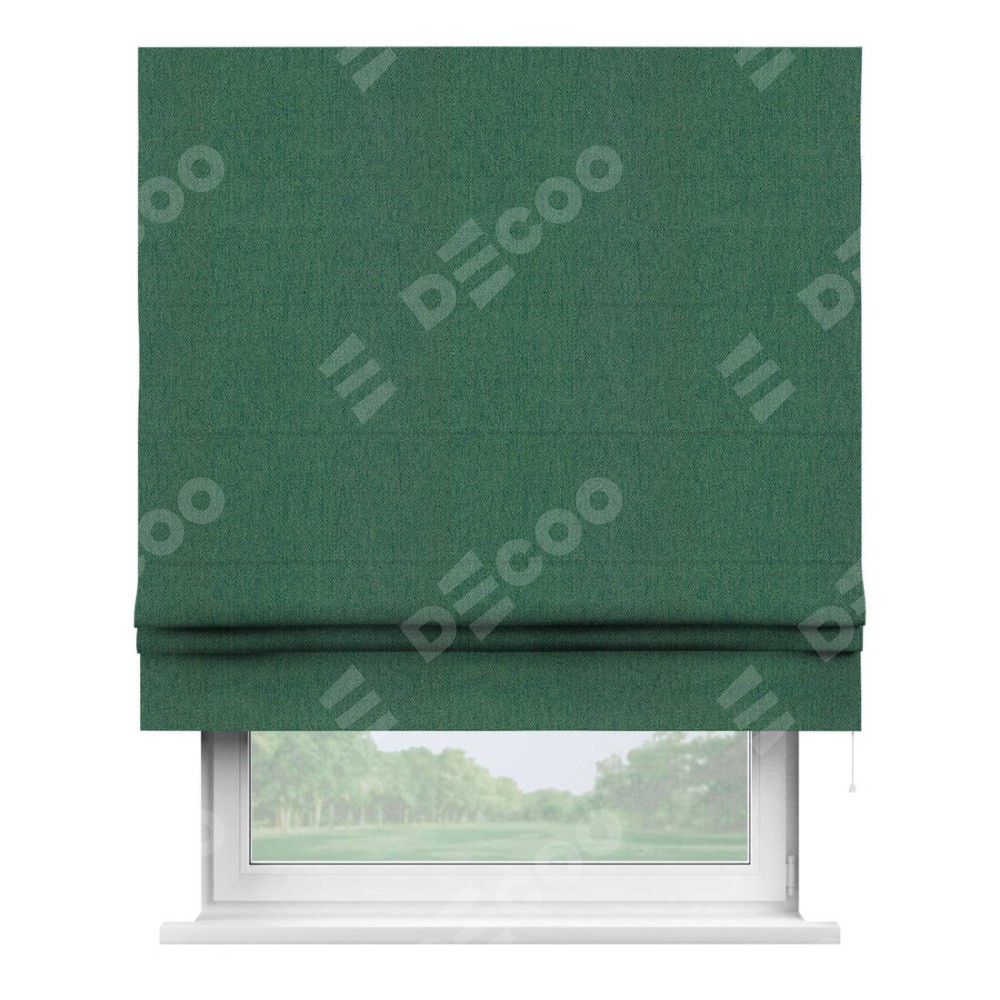 Римская штора производителя «Cortin», используется для проёма, пошита из ткани твид блэкаут зелёный, артикул ткани 21589. Имеет универсальный механизм и подходит для монтажа: на потолок, на стену и в нишу.