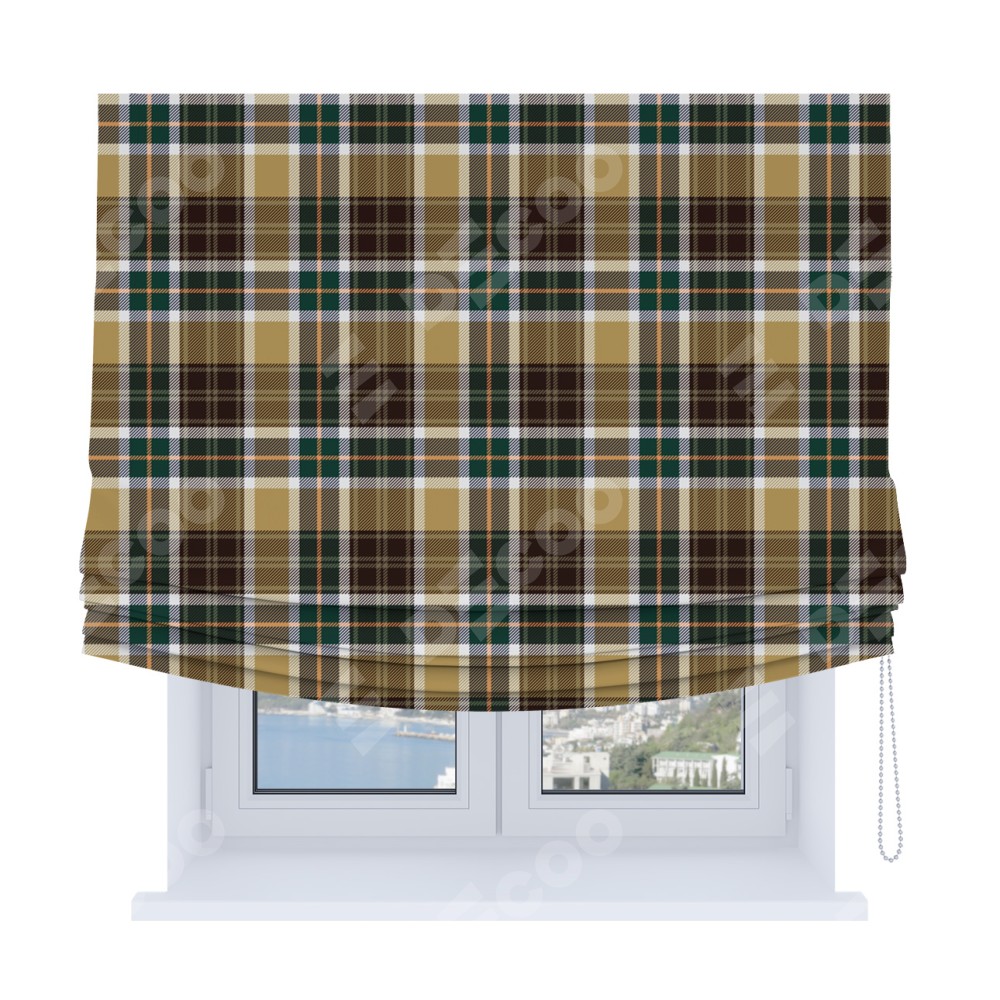 Римская штора Soft с мягкими складками, «Бежево-зелёная клетка»