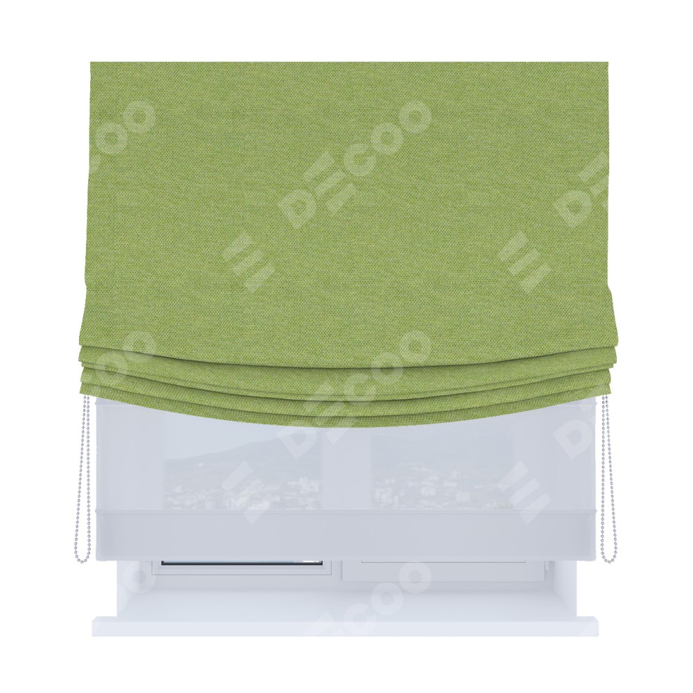 Римская штора день-ночь производителя «Cortin», используется для проёма, пошита из двух полотен, с лицевой стороны лён димаут салатовый артикул 83032, вторая ткань тюль (по стандарту комплектуется тюль белого цвета артикул V-01). Имеет универсальный механизм и подходит для монтажа: на потолок, на стену и в нишу. Удобное управление каждой шторой отдельно.