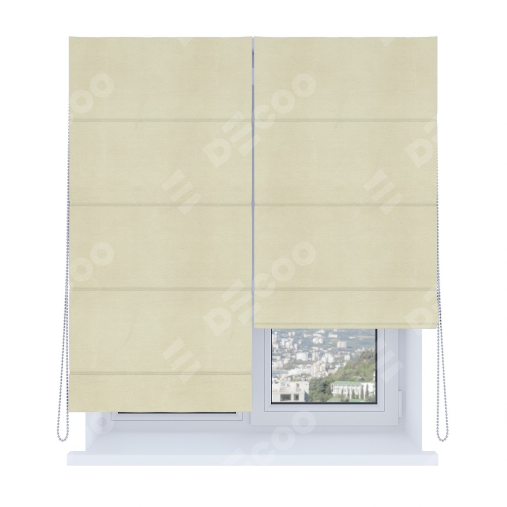 Римская штора «Кортин», система «Комфорт», бархат молочный представлена к заказу по по вашим размерам. Её артикул: 23250. будет зависеть от заданных параметров и начинается от 7 266 руб. В интернет-магазине Decoo есть возможность выбрать товар в любых размерных вариациях.