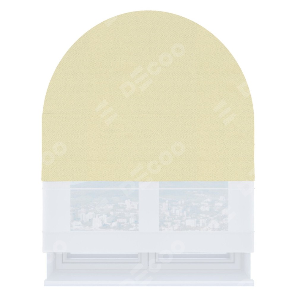 Римская штора день-ночь производителя «Cortin», используется для арочного проёма, пошита из двух полотен, с лицевой стороны блэкаут однотонный бежевый артикул 88283, вторая ткань тюль (по стандарту комплектуется тюль белого цвета артикул V-01). Штора шьётся по индивидуальным размерам, для данного типа римской шторы возможная ширина от 60 до 300 см. Удобное управление каждой шторой отдельно.