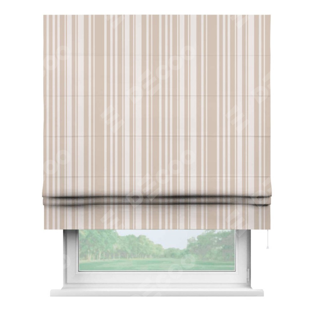 Римская штора «Кортин» для проема «Бежевые вертикальные полоски» отлично подойдёт для интерьера: в офис, в спальню и на балкон.
