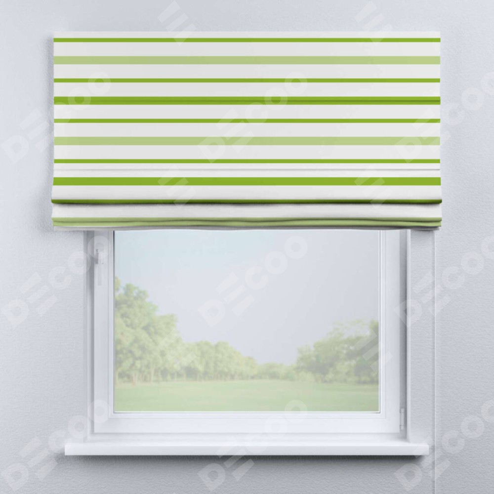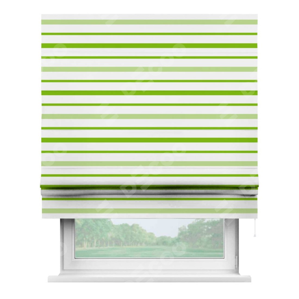 Римская штора «Кортин» для проема «Зелёные горизонтальные полоски» предоставлена в следующих характеристиках: