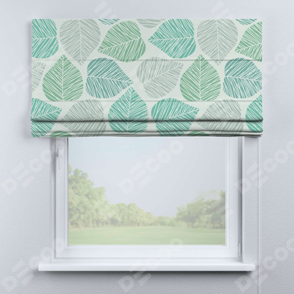 Римская штора производителя «Cortin», используется для проёма, пошита из ткани блэкаут с нанесением сублимационной печати «Весенняя листва». Имеет универсальный механизм и подходит для монтажа: на потолок, на стену и в нишу.