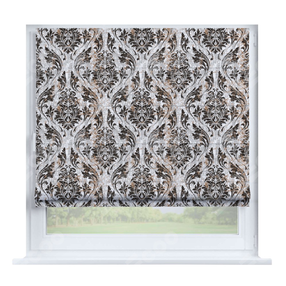 Римская штора производителя «Cortin», устанавливается на створку окна, пошита из ткани блэкаут с нанесением сублимационной печати «Дамаск тёмный». Штора шьётся по индивидуальным размерам, для данного типа римской шторы возможная ширина от 35 до 150 см., высота до 250 см.