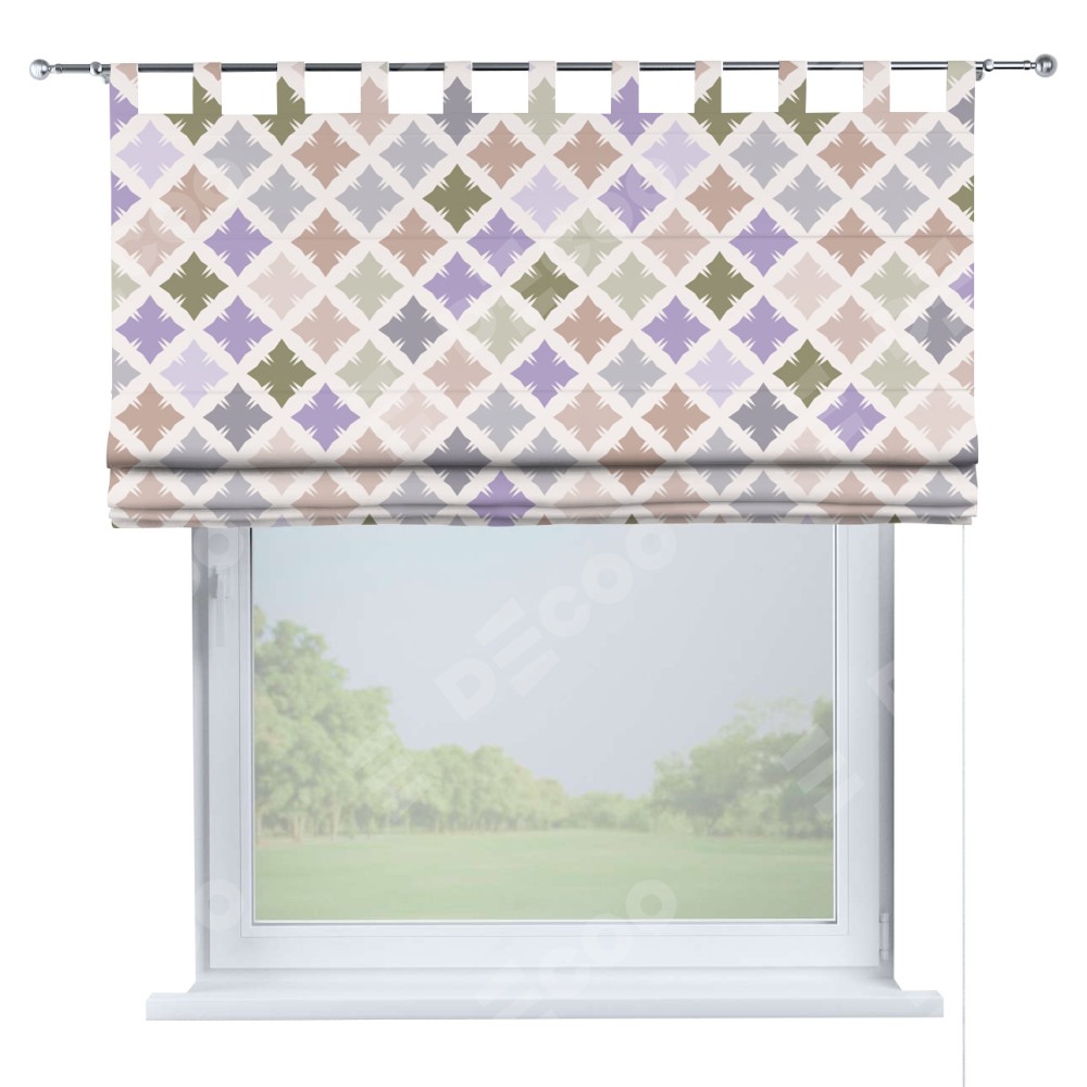 Римская штора производителя «Cortin», используется для проёма, пошита из ткани блэкаут с нанесением сублимационной печати «Фигурные плитки». Данная модель пошита на петлях, комплектуется на выбор круглым карнизом и подходит для монтажа на стену. Римская штора на петлях имеет простую систему регулировки высоты, отличительным преимуществом данной модели является простой способ монтажа. Достаточно повесить ее на трубу и штора готова!