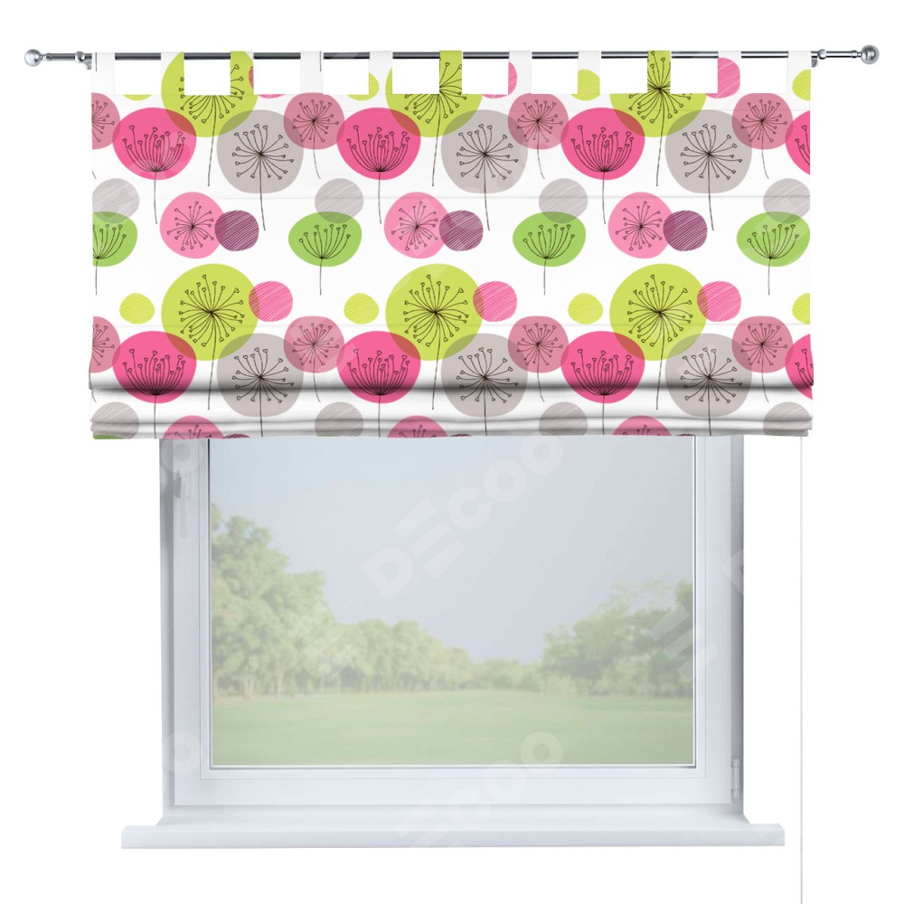 Римская штора производителя «Cortin», используется для проёма, пошита из ткани блэкаут с нанесением сублимационной печати «Цветные одуванчики». Данная модель пошита на петлях, комплектуется на выбор круглым карнизом и подходит для монтажа на стену. Римская штора на петлях имеет простую систему регулировки высоты, отличительным преимуществом данной модели является простой способ монтажа. Достаточно повесить ее на трубу и штора готова!