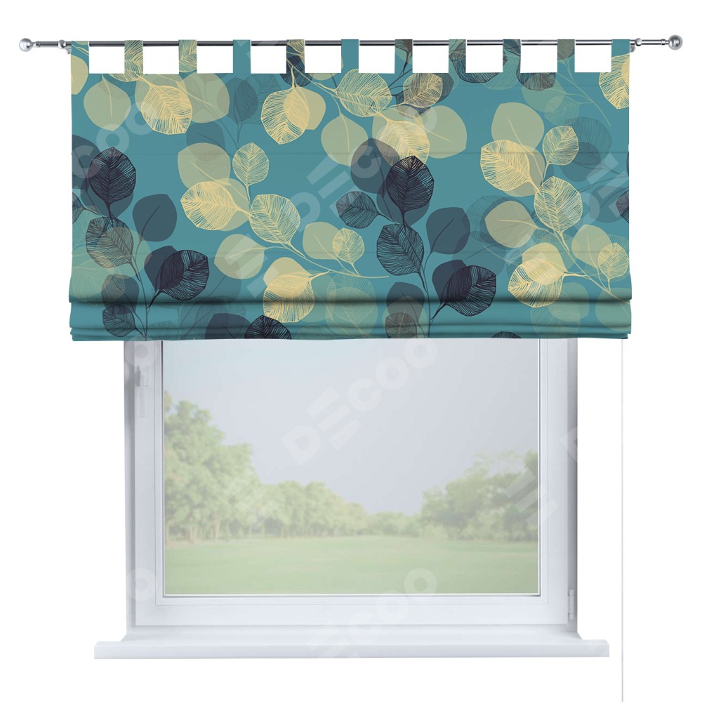 Римская штора производителя «Cortin», используется для проёма, пошита из ткани блэкаут с нанесением сублимационной печати «Листья в небе». Данная модель пошита на петлях, комплектуется на выбор круглым карнизом и подходит для монтажа на стену. Римская штора на петлях имеет простую систему регулировки высоты, отличительным преимуществом данной модели является простой способ монтажа. Достаточно повесить ее на трубу и штора готова!