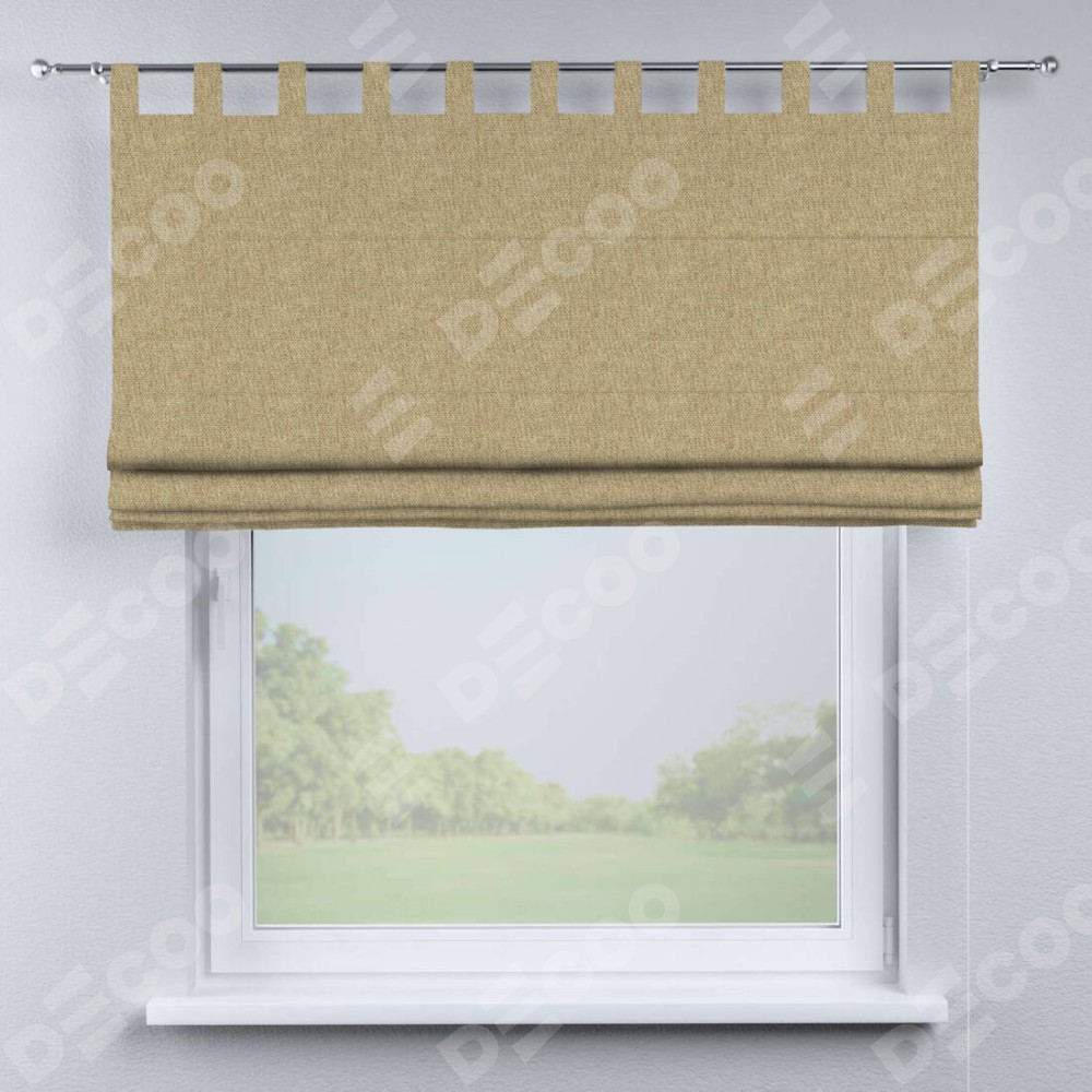 Римская штора производителя «Cortin», используется для проёма, пошита из ткани стиф димаут бежевый, артикул ткани 18083. Данная модель пошита на петлях, комплектуется на выбор круглым карнизом и подходит для монтажа на стену. Римская штора на петлях имеет простую систему регулировки высоты, отличительным преимуществом данной модели является простой способ монтажа. Достаточно повесить ее на трубу и штора готова!