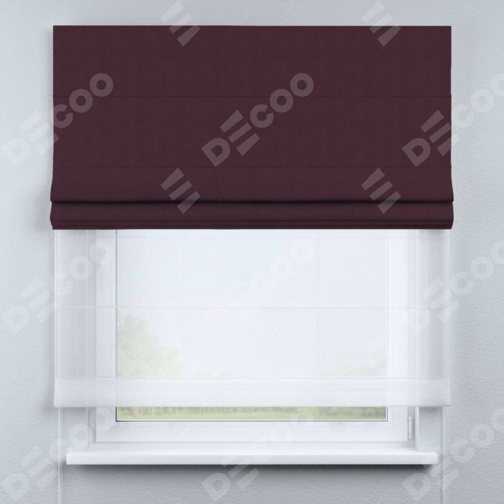 Римская штора день-ночь производителя «Cortin», используется для проёма, пошита из двух полотен, с лицевой стороны блэкаут однотонный сиреневый артикул 29333−2, вторая ткань тюль (по стандарту комплектуется тюль белого цвета артикул V-01). Имеет универсальный механизм и подходит для монтажа: на потолок, на стену и в нишу.