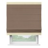 Римская штора производителя «Cortin», используется для проёма, пошита из ткани блэкаут однотонный коричневый, артикул ткани 88285. Отделка шторы кантом «Горизонт», ткань для канта используется из блэкаута однотонного разной расцветки на выбор. Имеет универсальный механизм и подходит для монтажа: на потолок, на стену и в нишу.