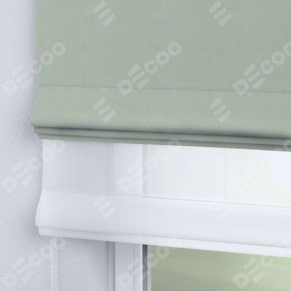 Римская штора день-ночь производителя «Cortin», используется для проёма, пошита из двух полотен, с лицевой стороны блэкаут однотонный светло-серый артикул 29332−2, вторая ткань тюль (по стандарту комплектуется тюль белого цвета артикул V-01). Имеет универсальный механизм и подходит для монтажа: на потолок, на стену и в нишу.