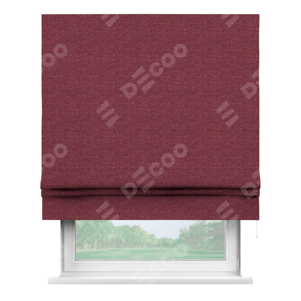 Римская штора производителя «Cortin», используется для проёма, пошита из ткани лён димаут марсала, артикул ткани 1602. Имеет универсальный механизм и подходит для монтажа: на потолок, на стену и в нишу.