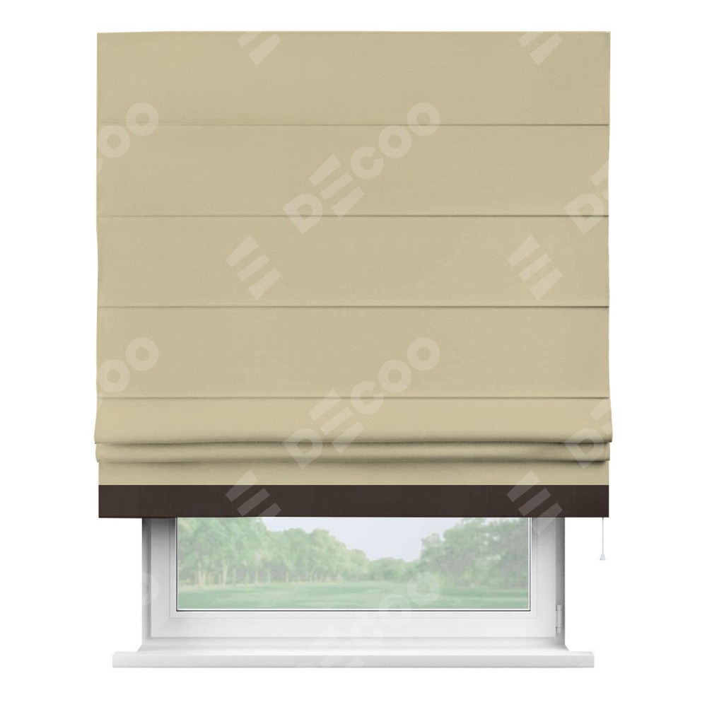 Римская штора производителя «Cortin», используется для проёма, пошита из ткани блэкаут однотонный кофейный, артикул ткани 13130. Отделка шторы кантом «Джестер», ткань для канта используется из блэкаута однотонного разной расцветки на выбор. Имеет универсальный механизм и подходит для монтажа: на потолок, на стену и в нишу.