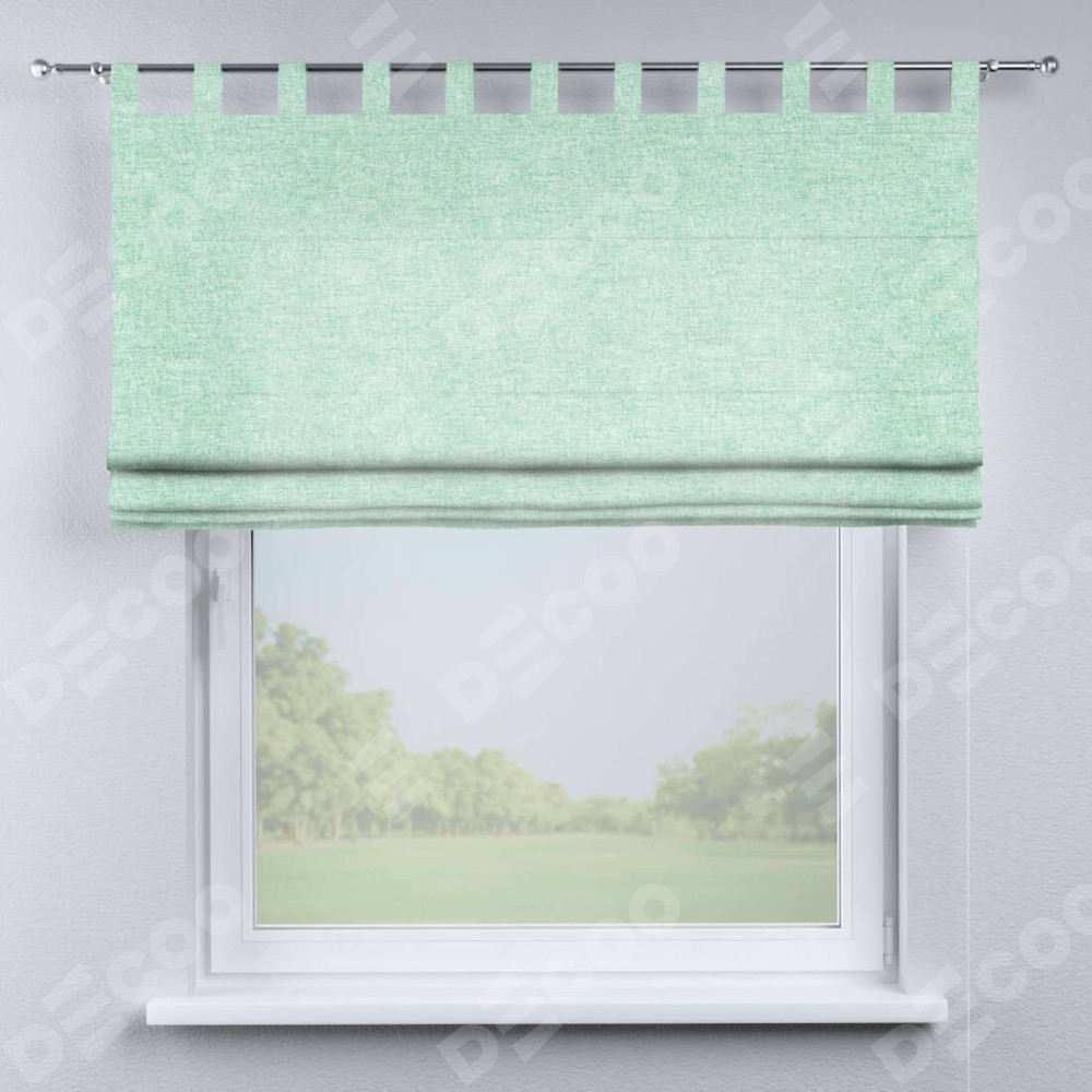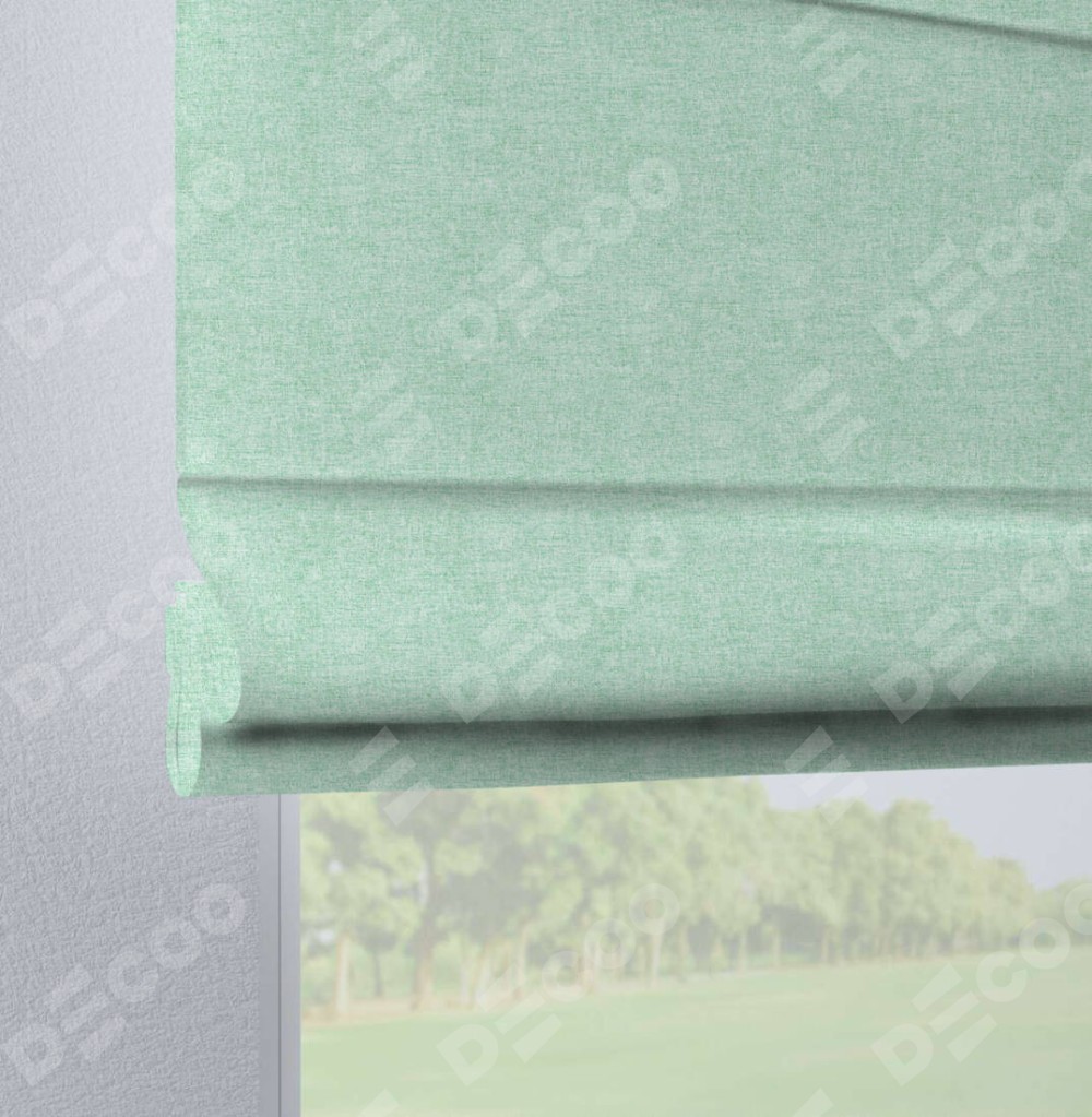 Римская штора производителя «Cortin», используется для проёма, пошита из ткани лён кашемир мятный, артикул ткани 21617. Данная модель пошита на петлях, комплектуется на выбор круглым карнизом и подходит для монтажа на стену. Римская штора на петлях имеет простую систему регулировки высоты, отличительным преимуществом данной модели является простой способ монтажа. Достаточно повесить ее на трубу и штора готова!