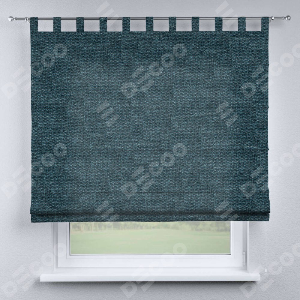 Римская штора производителя «Cortin», используется для проёма, пошита из ткани лён кашемир синий, артикул ткани 21623. Данная модель пошита на петлях, комплектуется на выбор круглым карнизом и подходит для монтажа на стену. Римская штора на петлях имеет простую систему регулировки высоты, отличительным преимуществом данной модели является простой способ монтажа. Достаточно повесить ее на трубу и штора готова!