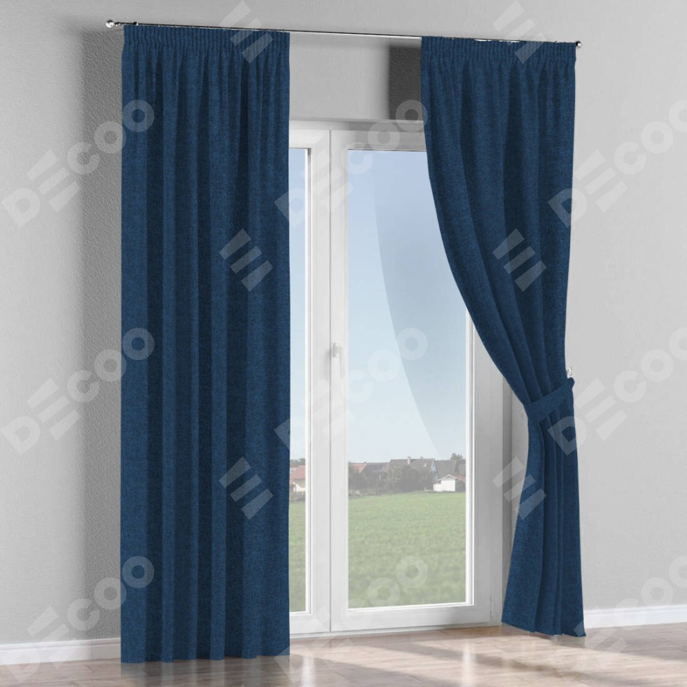 Комплект прямых штор, от производителя «Cortin», пошиты из ткани лён кашемир тёмно-синий, артикул ткани 17215. С изнаночной стороны в верхней части штор пристрачивается шторная лента с декоративными складками «Карандаш». Для создания элегантных складок прямые шторы шьются по стандарту с коэффициентом 1:2 (на 100 см. ширины проёма 200 см. ширины ткани).