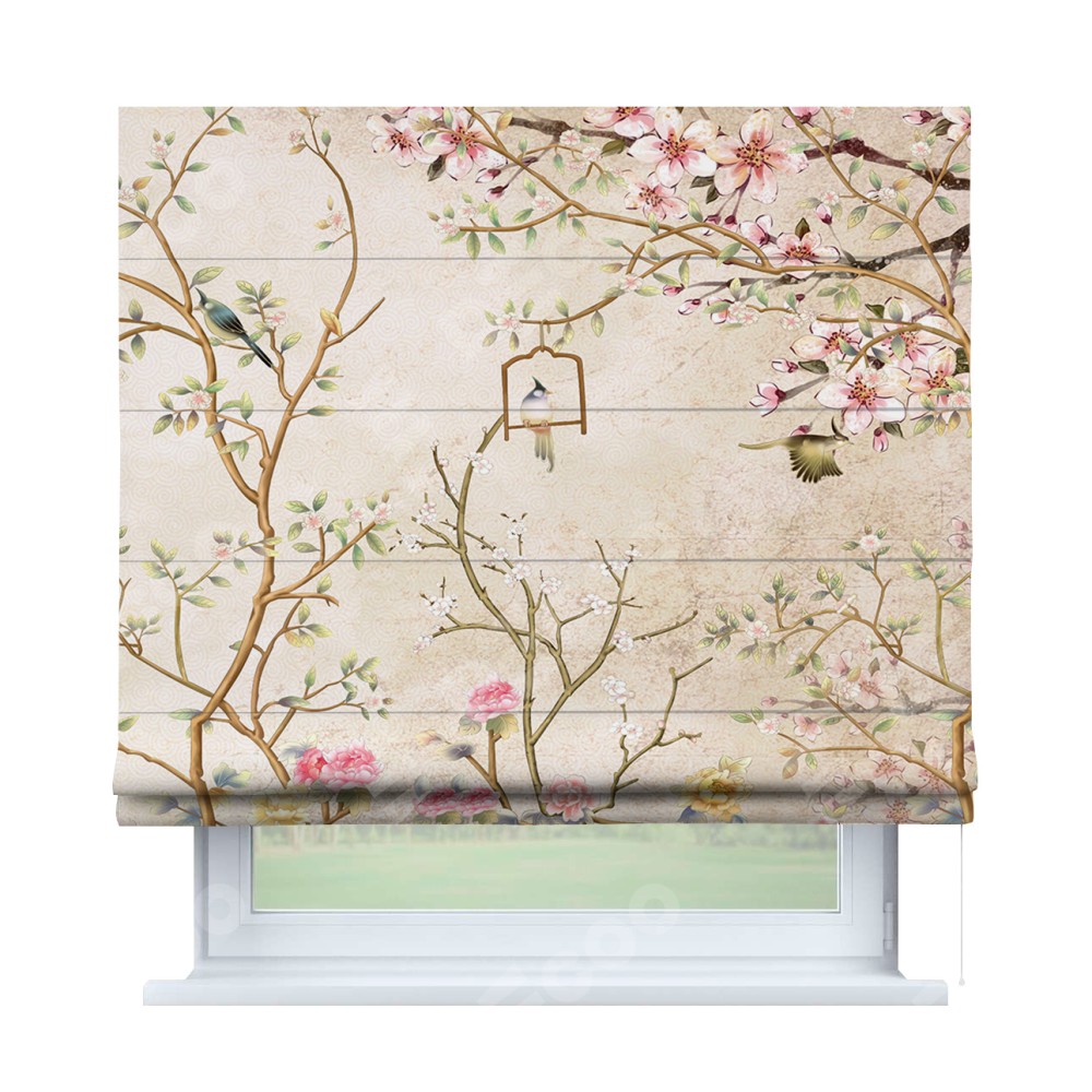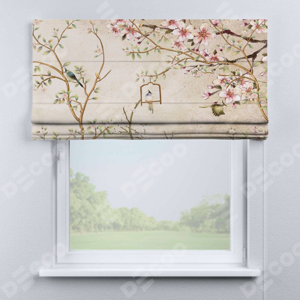 Римская штора производителя «Cortin», используется для проёма, пошита из ткани блэкаут с нанесением сублимационной печати «Весенний сад». Имеет универсальный механизм и подходит для монтажа: на потолок, на стену и в нишу.