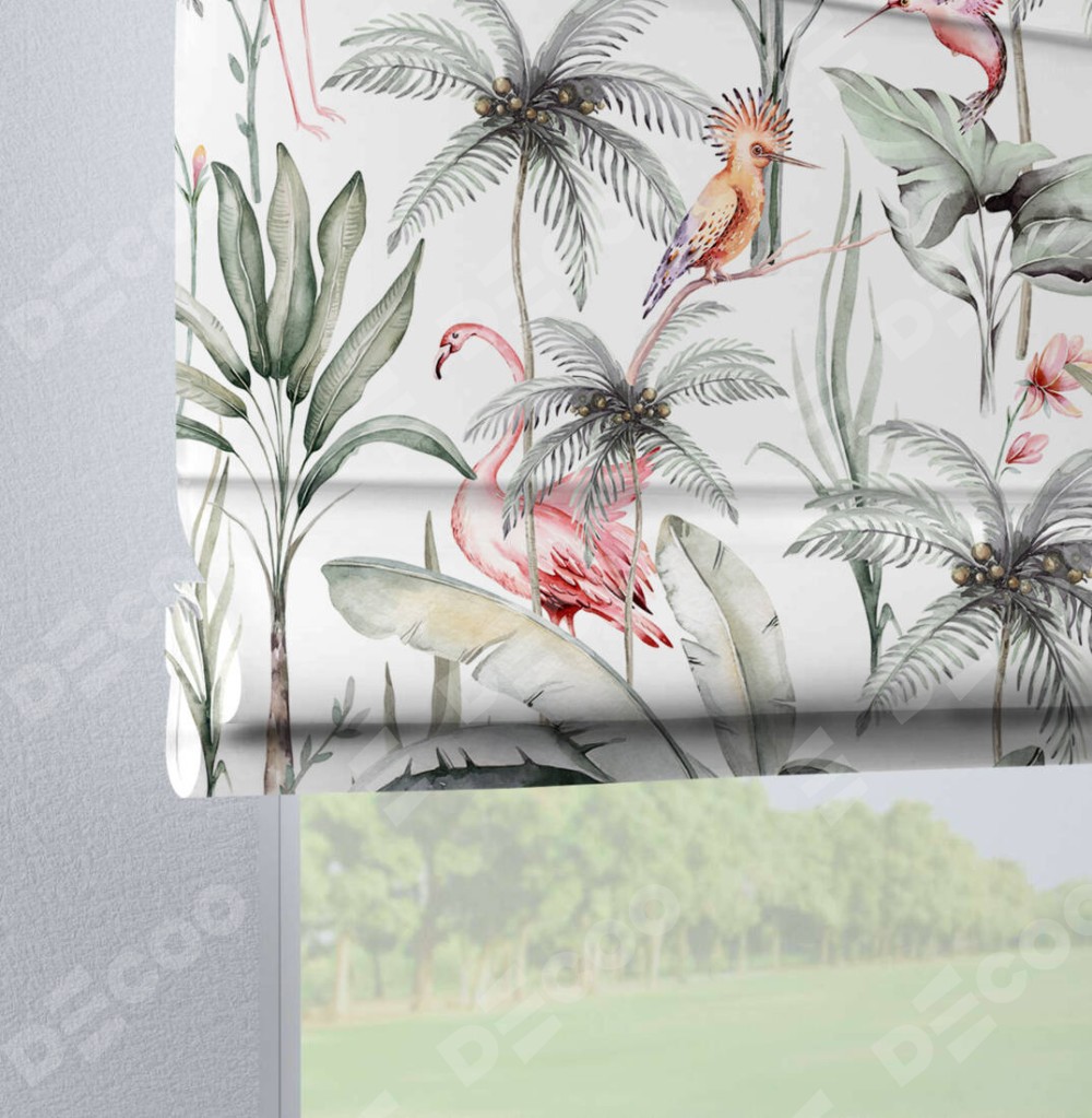 Римская штора производителя «Cortin», используется для проёма, пошита из ткани блэкаут с нанесением сублимационной печати «Изящные фламинго». Данная модель пошита на петлях, комплектуется на выбор круглым карнизом и подходит для монтажа на стену. Римская штора на петлях имеет простую систему регулировки высоты, отличительным преимуществом данной модели является простой способ монтажа. Достаточно повесить ее на трубу и штора готова!