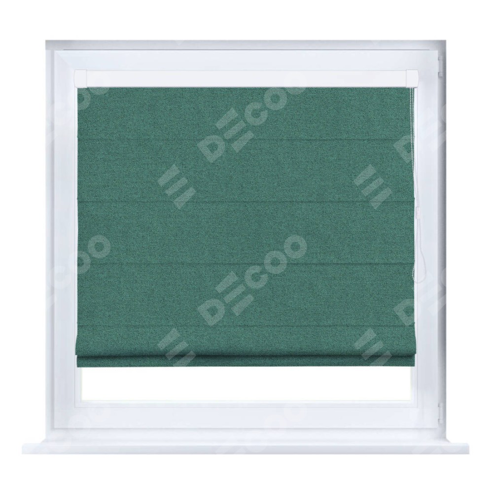 Римская штора производителя «Cortin», устанавливается на створку окна, пошита из ткани лён блэкаут бирюзовый, артикул 69517. Штора шьётся по индивидуальным размерам, для данного типа римской шторы возможная ширина от 35 до 150 см., высота до 250 см.