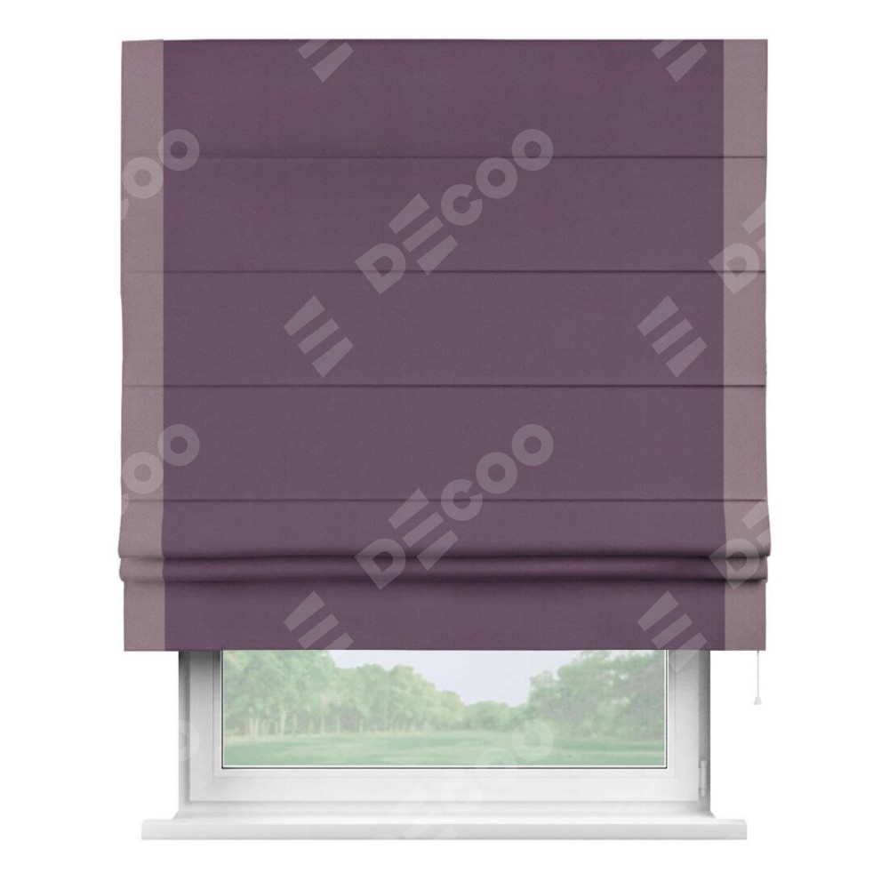 Римская штора производителя «Cortin», используется для проёма, пошита из ткани блэкаут однотонный фуксия, артикул ткани 88303. Отделка шторы кантом «Стрим Дуо», ткань для канта используется из блэкаута однотонного разной расцветки на выбор. Имеет универсальный механизм и подходит для монтажа: на потолок, на стену и в нишу.