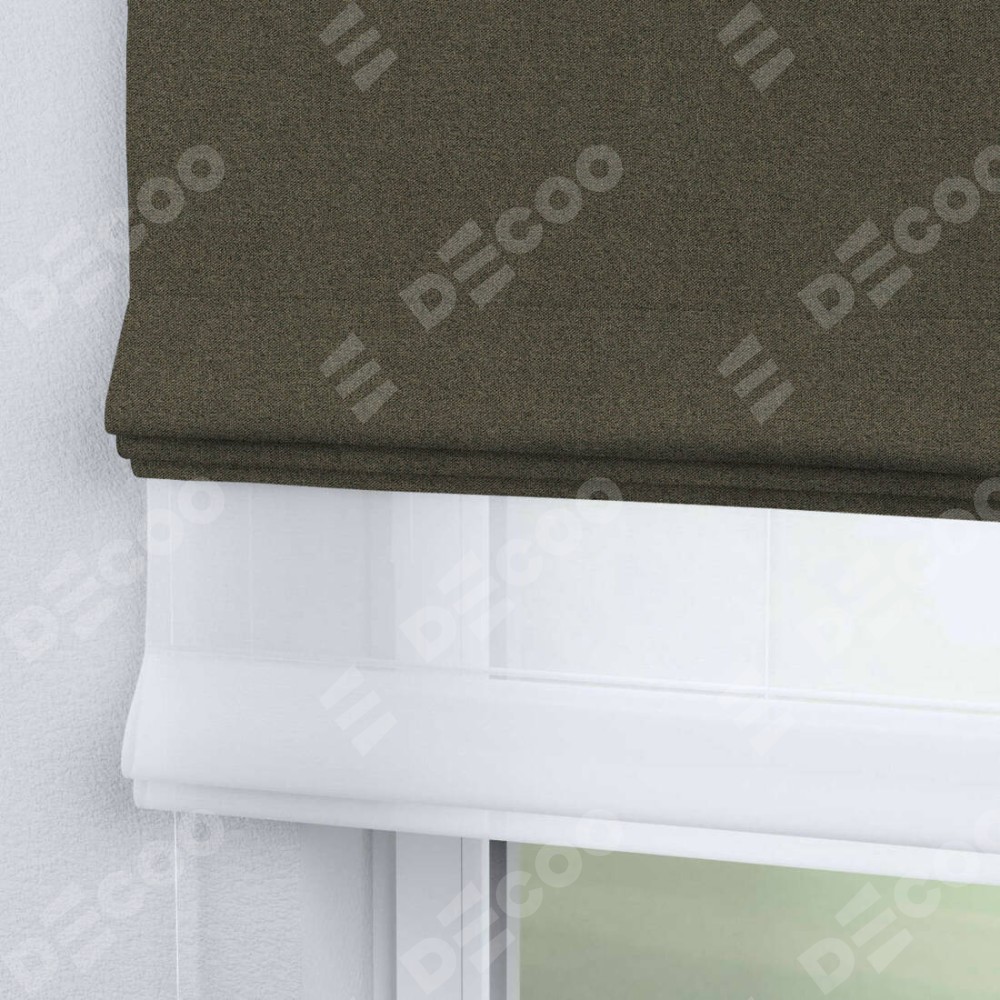 Римская штора день-ночь производителя «Cortin», используется для проёма, пошита из двух полотен, с лицевой стороны лён блэкаут коричневый артикул 69383, вторая ткань тюль (по стандарту комплектуется тюль белого цвета артикул V-01). Имеет универсальный механизм и подходит для монтажа: на потолок, на стену и в нишу.