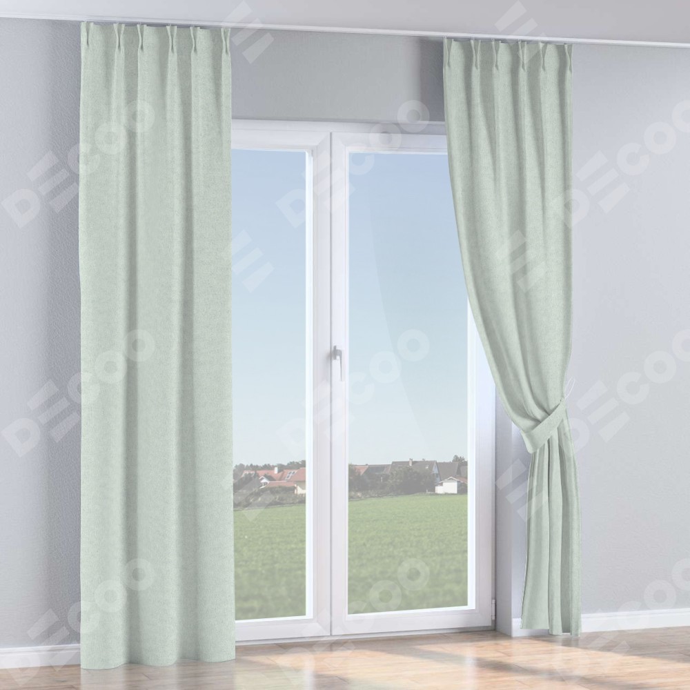 Комплект прямых штор, от производителя «Cortin», пошиты из ткани лён блэкаут белый, артикул ткани 69451. С изнаночной стороны в верхней части штор пристрачивается шторная лента с декоративными складками «Кустик». Для создания элегантных складок прямые шторы шьются по стандарту с коэффициентом 1:2 (на 100 см. ширины проёма 200 см. ширины ткани).