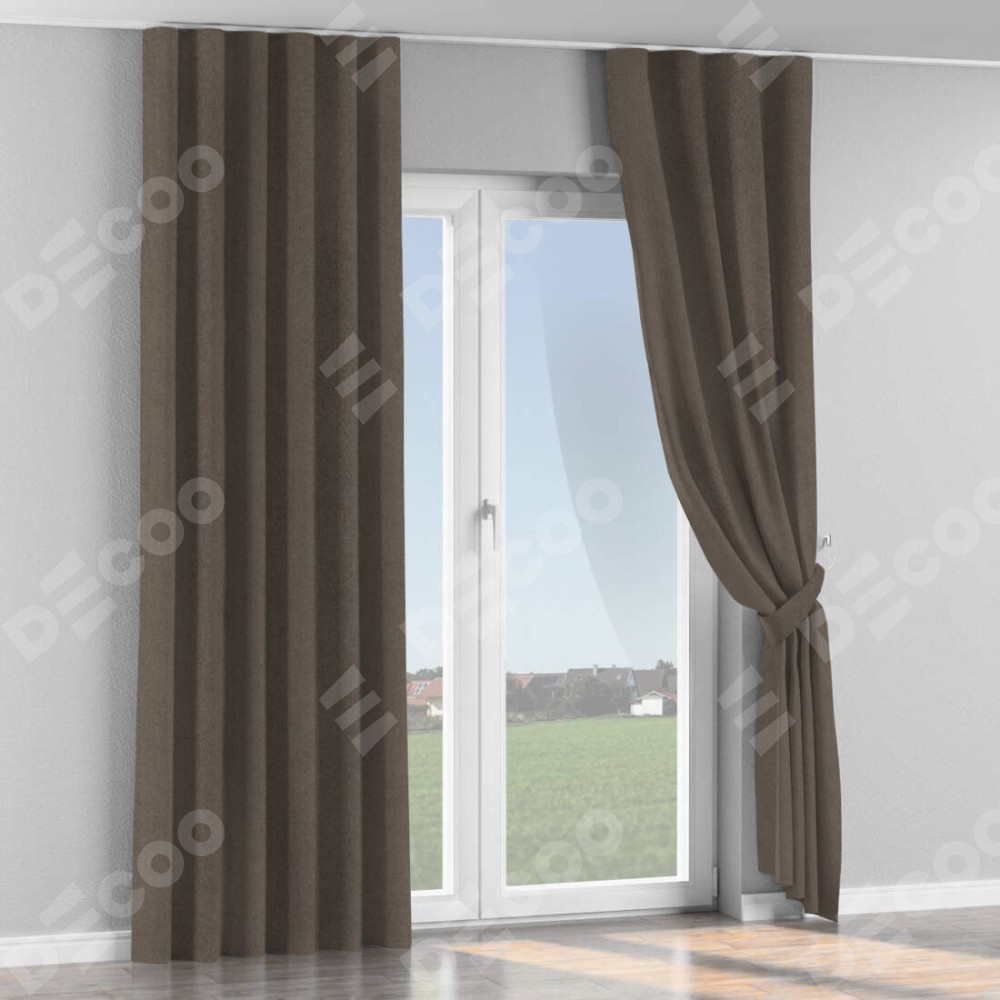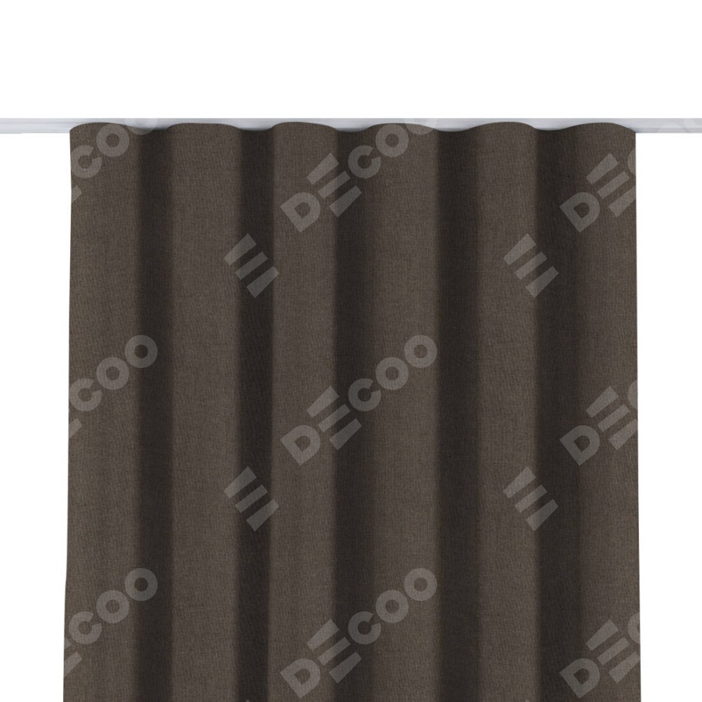 Комплект прямых штор, от производителя «Cortin», пошиты из ткани лён блэкаут коричневый, артикул ткани 69383. С изнаночной стороны в верхней части штор пристрачивается шторная лента с декоративными складками «Волна». Для создания элегантных складок прямые шторы шьются по стандарту с коэффициентом 1:2 (на 100 см. ширины проёма 200 см. ширины ткани).