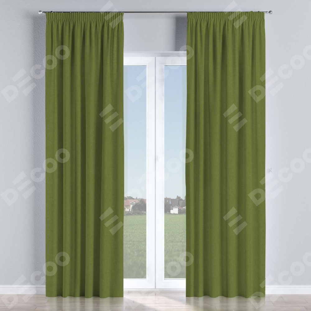 Комплект прямых штор, от производителя «Cortin», пошиты из ткани лён блэкаут оливковый, артикул ткани 69516. С изнаночной стороны в верхней части штор пристрачивается шторная лента с декоративными складками «Карандаш». Для создания элегантных складок прямые шторы шьются по стандарту с коэффициентом 1:2 (на 100 см. ширины проёма 200 см. ширины ткани).