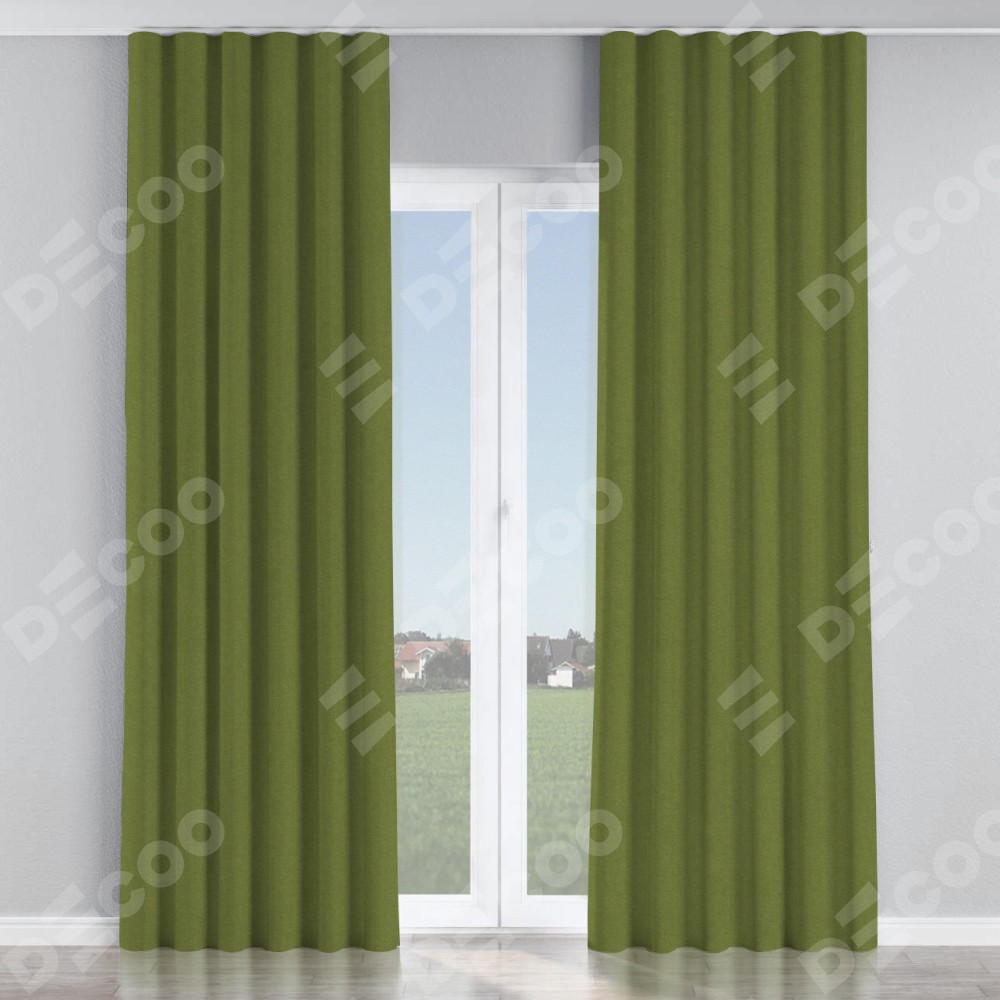Комплект прямых штор, от производителя «Cortin», пошиты из ткани лён блэкаут оливковый, артикул ткани 69516. С изнаночной стороны в верхней части штор пристрачивается шторная лента с декоративными складками «Волна». Для создания элегантных складок прямые шторы шьются по стандарту с коэффициентом 1:2 (на 100 см. ширины проёма 200 см. ширины ткани).