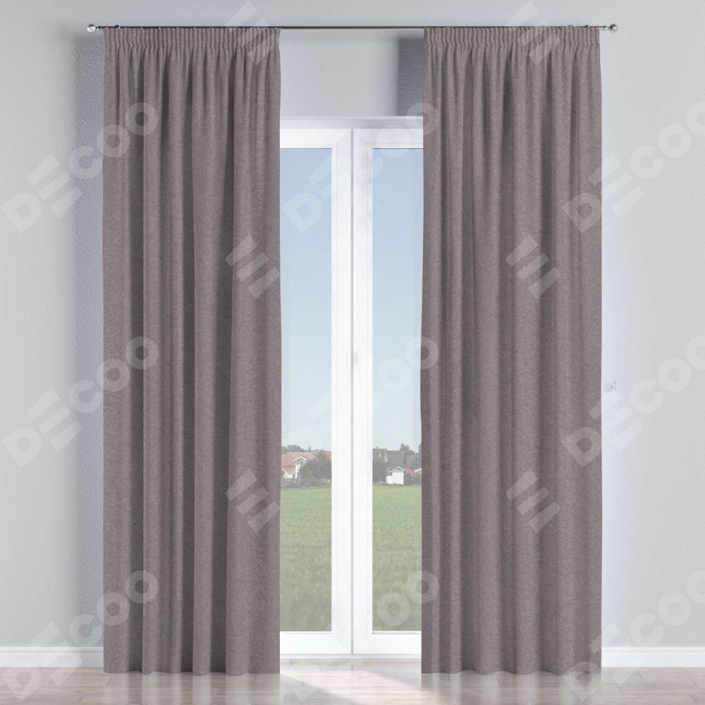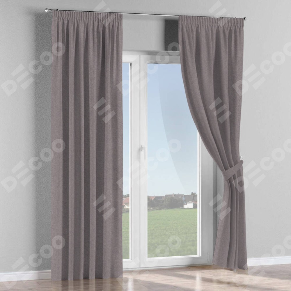 Комплект прямых штор, от производителя «Cortin», пошиты из ткани лён блэкаут сиреневый, артикул ткани 69576. С изнаночной стороны в верхней части штор пристрачивается шторная лента с декоративными складками «Карандаш». Для создания элегантных складок прямые шторы шьются по стандарту с коэффициентом 1:2 (на 100 см. ширины проёма 200 см. ширины ткани).