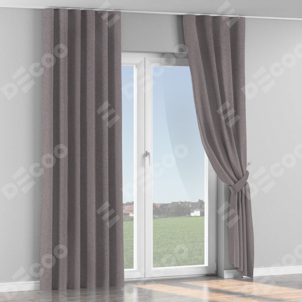 Комплект прямых штор, от производителя «Cortin», пошиты из ткани лён блэкаут сиреневый, артикул ткани 69576. С изнаночной стороны в верхней части штор пристрачивается шторная лента с декоративными складками «Волна». Для создания элегантных складок прямые шторы шьются по стандарту с коэффициентом 1:2 (на 100 см. ширины проёма 200 см. ширины ткани).