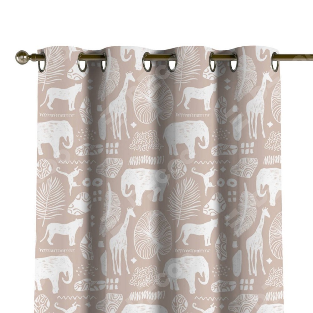 Комплект прямых штор, от производителя «Cortin», пошиты из ткани блэкаут с нанесением сублимационной печати «Африканские животные». Данная модель пошита на люверсах, комплектуется на выбор круглым карнизом и подходит для монтажа на стену или потолок. Прямые шторы на люверсах шьются по стандарту с коэффициентом 1/2 (на 100 см. ширины проёма 200 см. ширины ткани), отличительным преимуществом данной модели является простой способ монтажа. Достаточно повесить ее на трубу и штора готова!