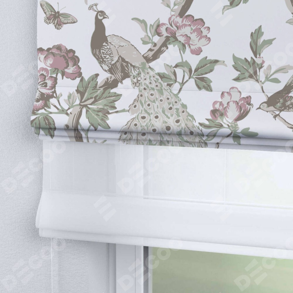 Римская штора «Кортин» день-ночь «Гордые павлины»