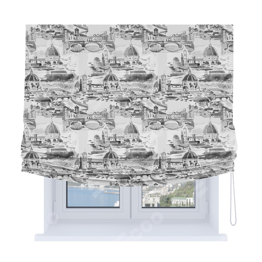 Римская штора Soft производителя «Cortin», используется для проёма, пошита из ткани блэкаут с нанесением сублимационной печати «Старый город». Имеет универсальный механизм и подходит для монтажа: на потолок, на стену и в нишу. В отличие от стандартных римских штор, римская штора Soft не имеет горизонтальных вставок и нижнего отвеса. Это позволяет ткани произвольно драпироваться в свободные мягкие складки.