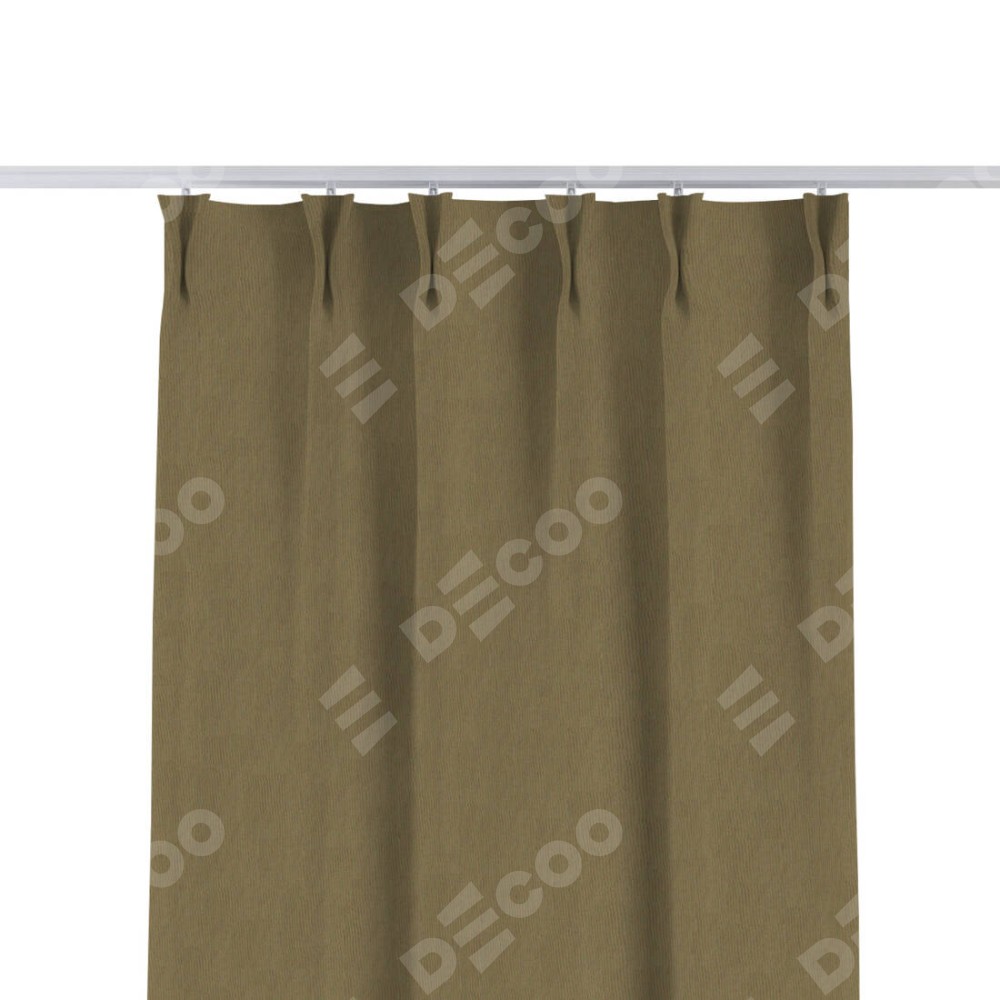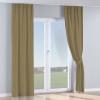 Комплект прямых штор, от производителя «Cortin», пошиты из ткани блэкаут однотонный бежево-золотой, артикул ткани 12095−2. С изнаночной стороны в верхней части штор пристрачивается шторная лента с декоративными складками «Кустик». Для создания элегантных складок прямые шторы шьются по стандарту с коэффициентом 1:2 (на 100 см. ширины проёма 200 см. ширины ткани).