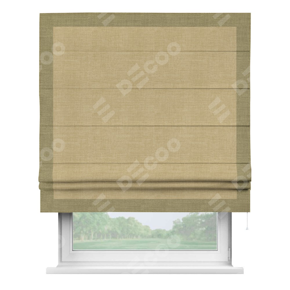 Римская штора «Кортин» с кантом Чесс, для проема, ткань лён бежевый