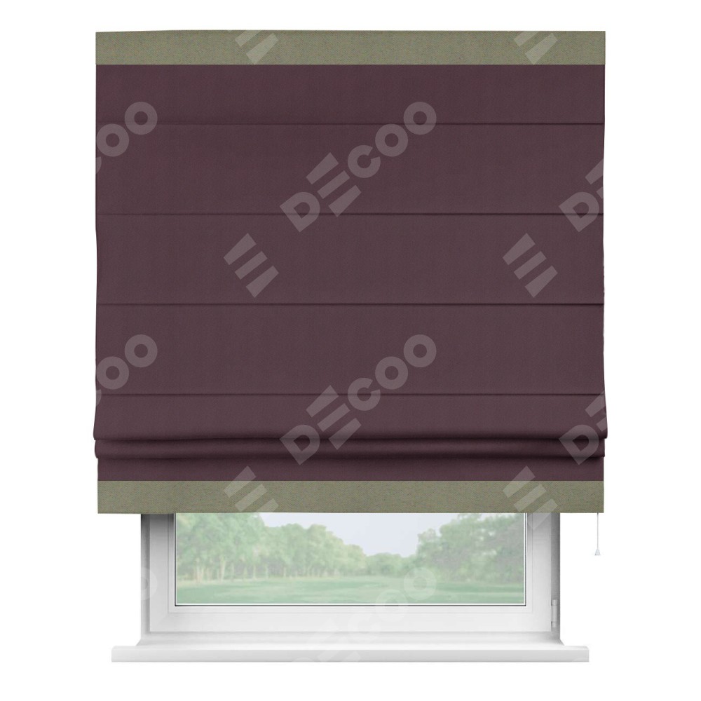 Римская штора производителя «Cortin», используется для проёма, пошита из ткани блэкаут однотонный сиреневый, артикул ткани 29333−2. Отделка шторы кантом «Горизонт», ткань для канта используется из блэкаута однотонного разной расцветки на выбор. Имеет универсальный механизм и подходит для монтажа: на потолок, на стену и в нишу.
